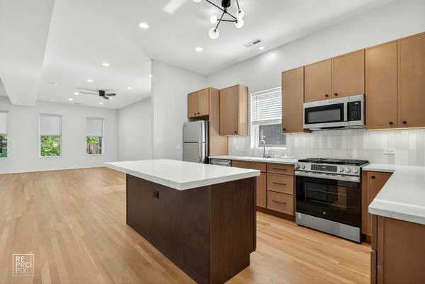 * All new kitchen with 9.5' ceiling quartz countertops, 42" wood cabinets and new stainless steel appliances includes dishwasher and built in microwave.