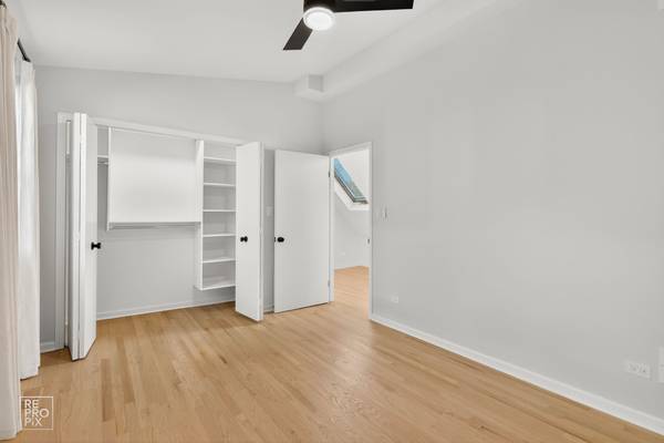 Super cool and bright open floor plan apartment located on of the best residential streets in Bucktown. This unit features high ceilings and tall windows throughout, allowing for great natural light. Hardwood floors throughout. All new kitchen with stainless steel appliances, dishwasher, wood cabinets and quartz countertops. The bathroom features a tile shower with glass door and a wide vanity with storage in the form of cabinets plus additional large linen shelves. Primary bedroom fits a king bed tightly.