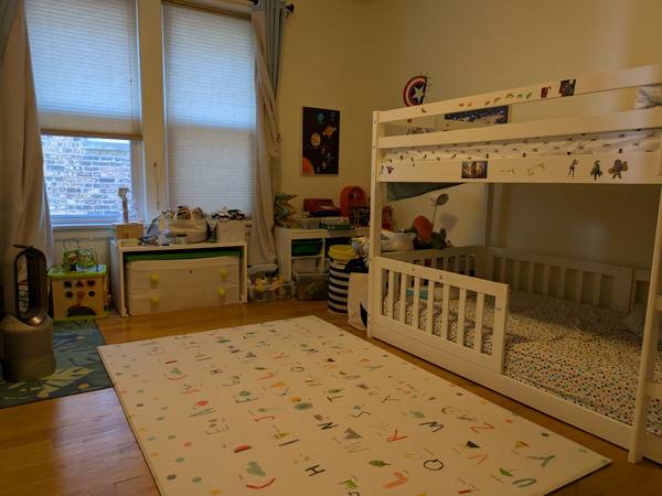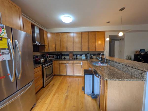 We are soon moving out of this beautiful large (2,400sqft) 4 bedrooms 3 bathrooms apartment. It features tree top views, a lot of sunlight, and beautiful hard wood floors throughout. The heart of the home is a lovely kitchen, with stainless steel appliances. This apartment is designed for privacy and convenience, with four spacious bedrooms, two featuring ensuite bathrooms, and an in-unit washer/dryer. There is AC/gas forced central air. You're just moments from campus, the Lab Schools, (172 is just across the street). 10 minutes walk from Whole Foods and parks. Perfect for university families, professionals, or students.