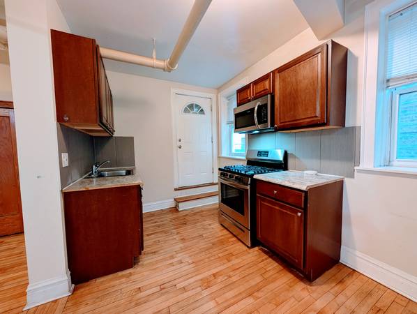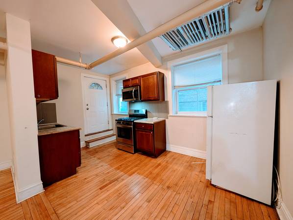 -full size appliances (Fridge, gas stove/oven, *dishwasher*, *microwave*)