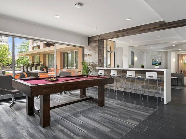 Inside the building, amenities were designed with convenience in mind—automated package lockers, automated dry cleaning, a spacious resident lounge, and an outdoor courtyard to work or unwind. The 24-hour fitness center makes it easy to stay active on your schedule.