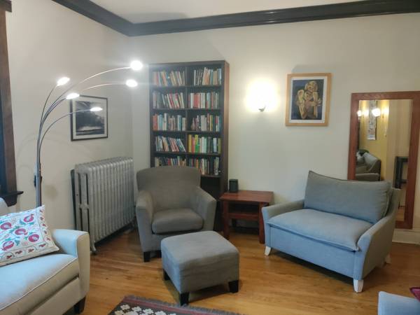 Quiet location on boulevard, near Palmer Square park. Five minutes from many great Logan Square restaurants, cafes and bars. 10-minute walk to CTA blue line stops at California or Logan Square (20 minutes to downtown and 30 minutes to O'Hare).