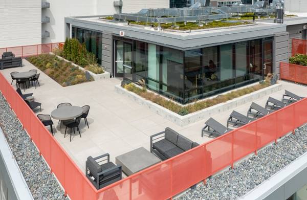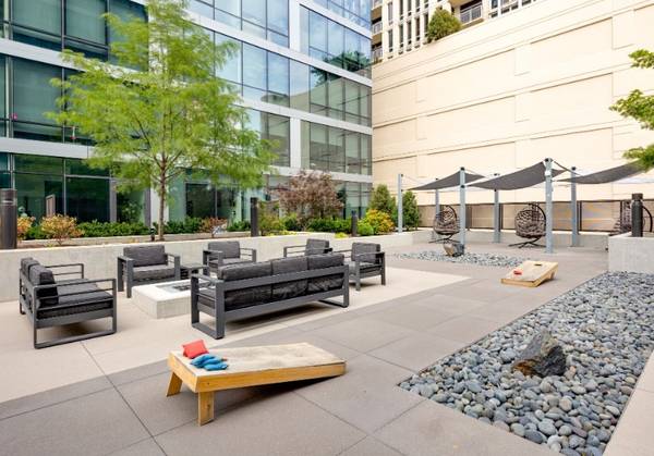 In terms of amenities, there are two outdoor terraces located on the 3rd and 16th floors. Savor the views while grilling your favorite meal or cozying up by the fire pits. Inside, there’s a party room and resident lounge, complete with a chef's kitchen and private dining area for special occasions. For gym enthusiasts, the Peloton bike-equipped fitness center awaits. This community has also made daily life more convenient with package lockers, complimentary bike storage, and round-the-clock door staff to cater to your needs.
