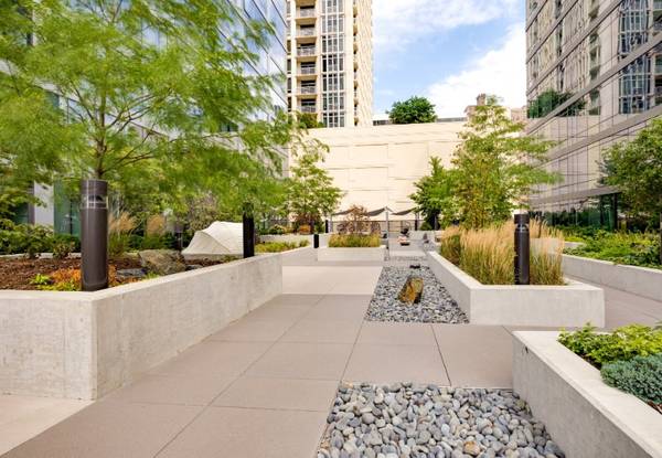Here is a sleek newer addition to Chicago’s South Loop, a 16-story contemporary glass and concrete style building. Perched within walking distance to a bevy of grocery stores, shopping, dining and public transportation options, it’s also a stone’s throw away from Grant Park, the lake and Museum Campus.