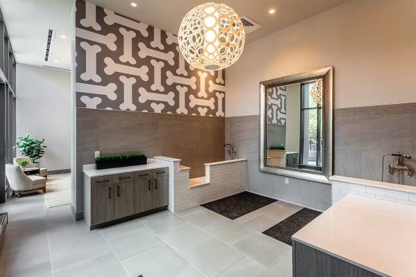 Cats and dogs are welcome with breed restrictions, plus there’s an onsite dog run, owner’s lounge, and one of the most posh pet spas in town! Garage parking is also available with additional fees.