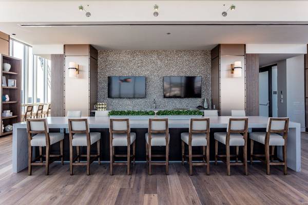 Packed with amenities, you may never leave home with so many social, recreational and relaxing activities on-site. They include a fitness center and yoga studio, game room with arcade, shuffleboard and pool tables, sky lounge with social kitchen, rooftop pool and sun deck with hot tub, grills and outdoor dining area, and a children’s playground.