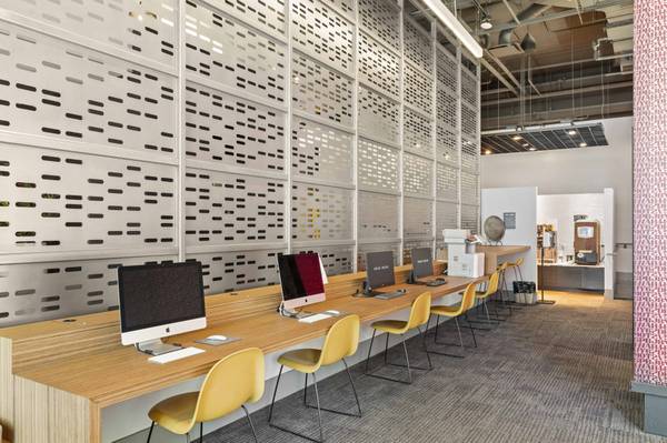 It’s hard to enter these apartment homes and not be drawn to the 10’ ceilings with exposed concrete and duct work. Kitchens include stainless steel appliances with either slate gray or espresso cabinets and designer backsplashes. Hardwood flooring, resident-controlled and programmable thermostats and full-size stackable washers and dryers come standard in every apartment. Some units come with exposed brick and balconies, as well.