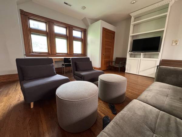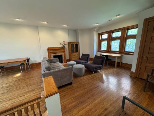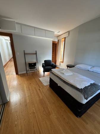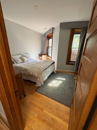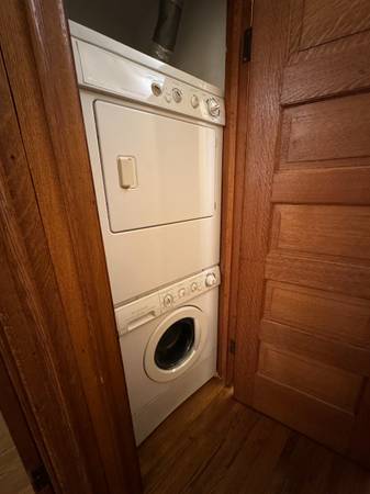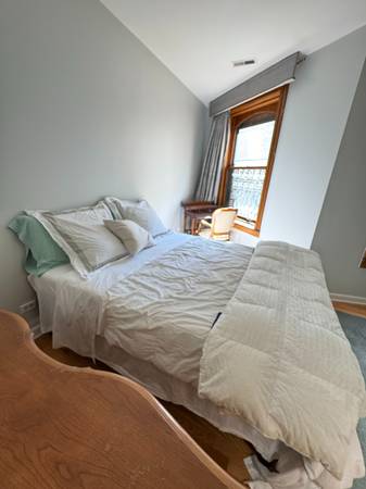 Washer dryer in unit. Parking also available in back with a private space. Close to transportation to O'Hare and bus or train to downtown very close five minute walk. Close to grocery stores and the best restaurants in Chicago and nightlife five minute walk away and the beach at Oak Street is a ten minute walk to the water and Oak Street Beach and the North Avenue Beach and volley ball leagues are also a ten minute walk from this Historic mansion. Can be offered fully furnished with full kitchen like an airbnb for a year with one queen bed, + one full bed with linens + (beds are new!) and with linens + two convertible modern new chairs which also turn into comfortable twin beds. Can sleep six.