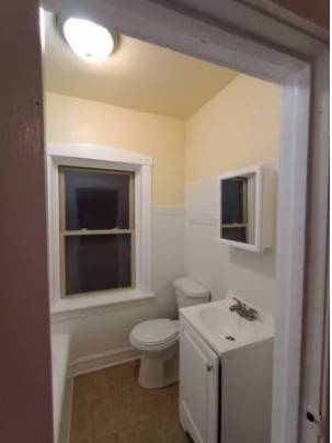 Baño: Un baño completo con bañera y ducha, que incluye estanterías para una mejor organización de sus artículos de aseo.