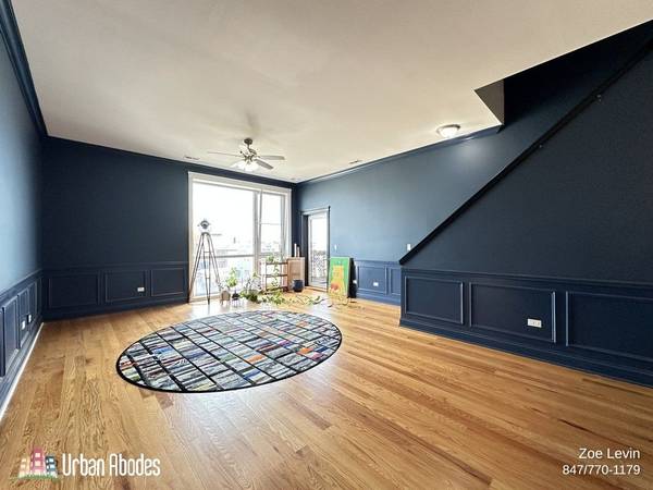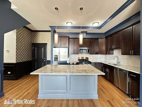 Amazing three bedroom, two and a half bathroom in Smith Park features rehabbed kitchen with espresso cabinets, stainless steel appliances, dishwasher, microwave, open large combination living and dining rooms with ceiling fan, spacious bedrooms, amazing closet space, rehabbed bathrooms, ceiling fans, hardwood flooring throughout, central heat and air, parking available, stunning private rooftop deck, and in unit laundry! Close to Western Ave el stop!