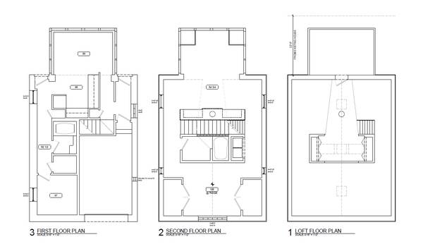 Up the stairs will take you to the light filled living room with a wood burning fire place and the studio-style bedroom and master bath. On the third level is a small, unenclosed artist studio / desk work space and roof top porch.