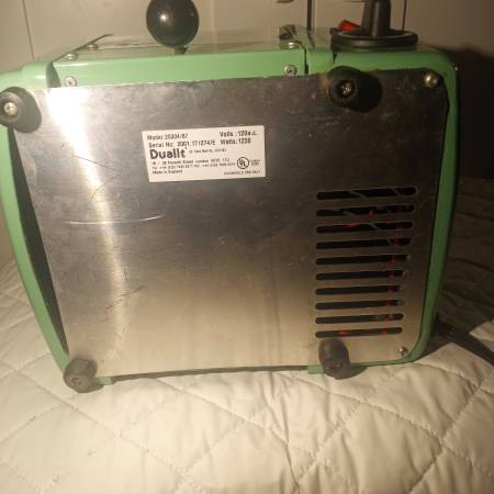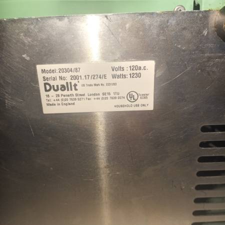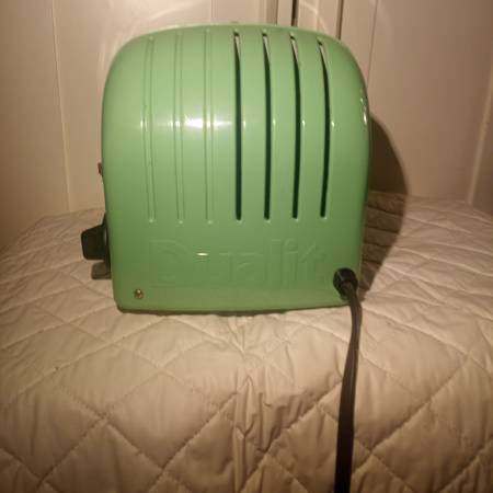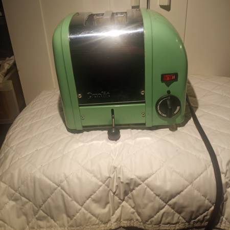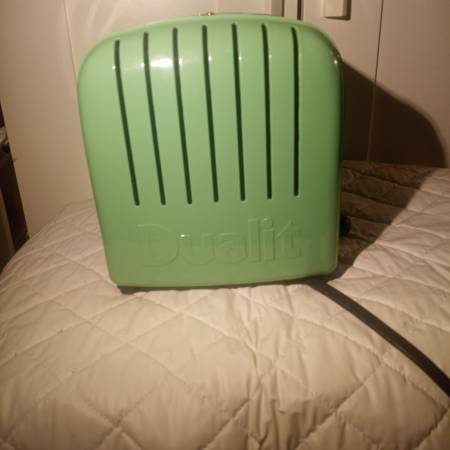 Selling a lightly used Dualit 2 slice retro style toaster hand built in the UK. This is as best quality of toaster you can buy. They are hand built and easy to repair so it can last you decades. Retails $300 new. Upgraded to a 4 slice model since I loved it so much.the model is 20304/87. It uses a mechanical timer and push lever to pop out the bread. Thr heating elements are easy to replace. Only reason I am selling so cheap is because I lost the crumb tray when I stuck this in a closet. A replacement is cheap online, about $20. Great deal for anyone looking for a quality toaster. Email if you are interested or have any questions. Will consider reasonable offers.