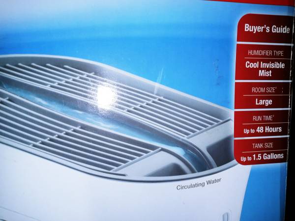 Designed for use in a Large sized room and has a self regulating evaporation system. This feature naturally adjusts output to the amount of moisture that the air can hold at a certain temperature. It has 1.5 gallon tank & runs up to 48 hours on one filling, and the illuminated water window indicates when a refill is needed. With dishwasher-safe parts, maintenance is easy. The Honeywell home humidifier combines comfort and convenience so that maintaining the air in your home or office is simple.