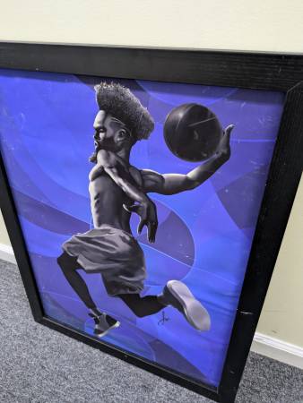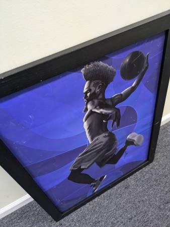 The artwork is in good condition. It was not created by me. The images show the details of the work. It is on a board. The last picture shows the back for hanging. 26" by 20" Payment; Zelle Venmo...