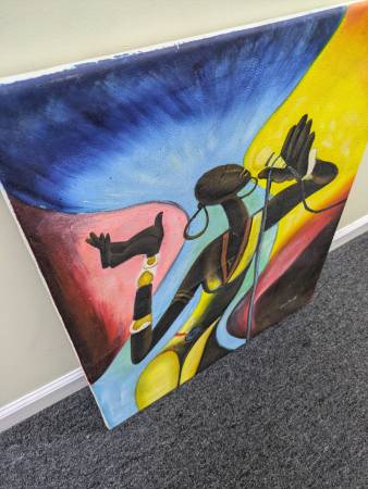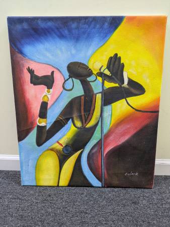 The painting is in excellent condition. It was not created by me. The images show the details of the painting. It is on canvas. The last picture shows the back for hanging. (The painting has a fold...