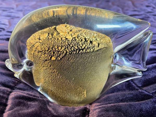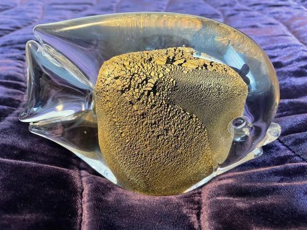 Vintage ITALIAN ORIGINAL GLASS Mid Century Hand Crafted Puffy Fish 24kt Gold Foil Venetian Bead Hand Crafted Weight: 1.6lb Made in Italy