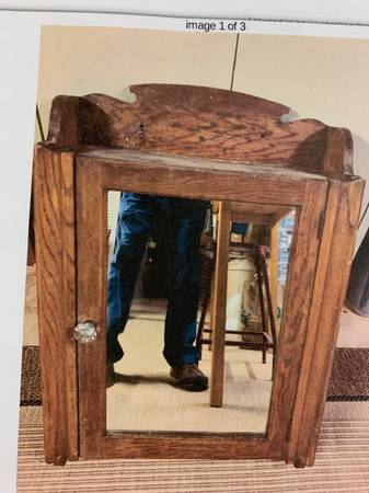 Antique oak medicine cabinet with towel bar Height 28 inches Width 20 inches Depth 7 inches
