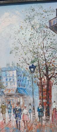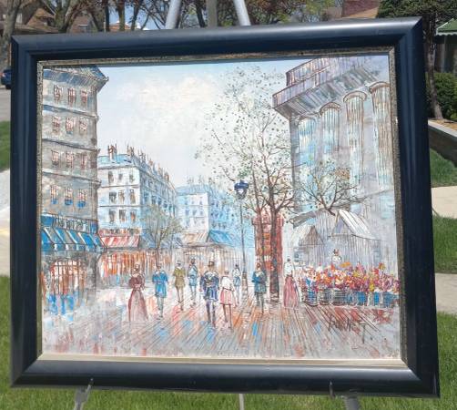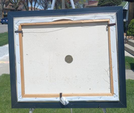 Signed oil on canvas is 20" by 24" in a 24" by 28" wood frame.