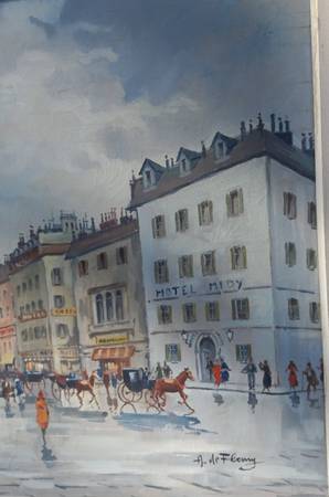 This is an original oil on canvas of an Italian city by noted artist A de Fleury, a Hungarian 19th Century painter who was born in 1957. It is housed in a 30 ¼"x42 3/8" ornate wood frame with the...