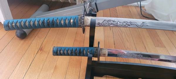 Very nice Edo period daisho set, with horimonos on blade, both signed