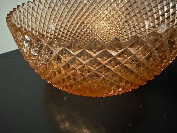 Vintage Anchor Hocking Miss America Pink large bowl with beautiful diamond pattern. In fantastic condition with no chips or cracks. Looks brand new! 8.75" diameter x 4" tall