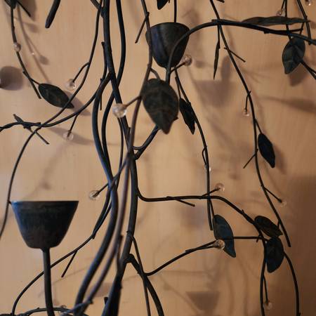 3 DimensionalVintage Metal Wall Hangings with Leaves, Beads, and Candle holders. Approximately 34" long, 24" wide, 9" deep. Branches are slightly bendable so you can adjust them. We have 3 of them....