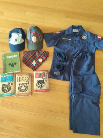 All in new condition Youth size M shirt Pants Size 8 Uniform (Pant, Shirt, Belts, Caps), books, caps, belt loops, patches and a lot more. Bobcat, Tiger, Wolf, Bear, Webelos, Arrow of Light Take it...