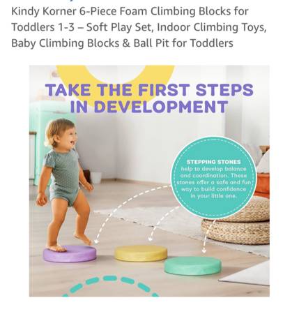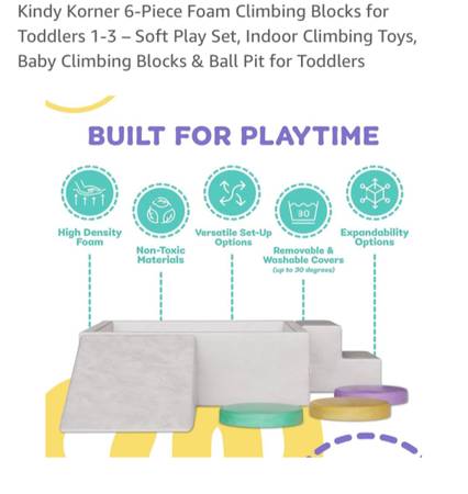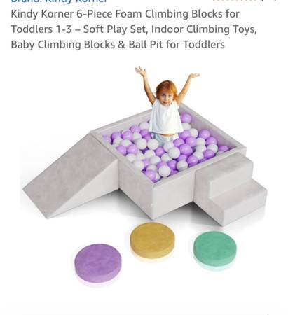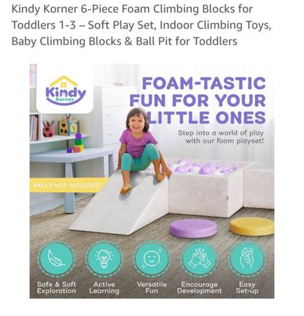 New in sealed package6 pieces. soft climbing blocks and ball pit.Great for ages one through three. Safeway for your child to have fun. Balls sold separately.