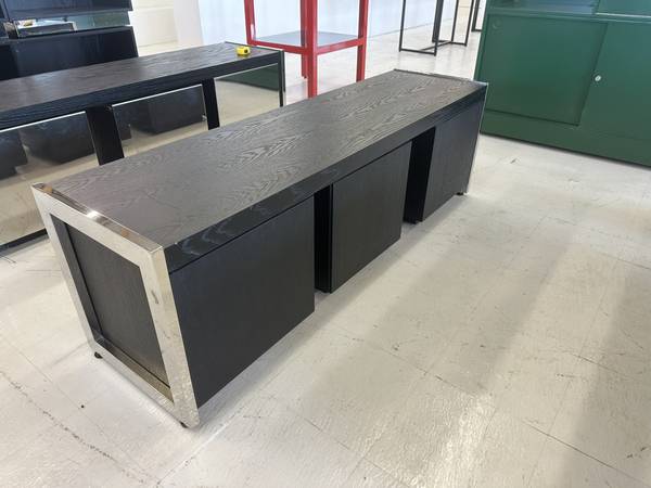 62x17x19.25 Black Wood 3 drawer table with Mirrored Fronts 2 available