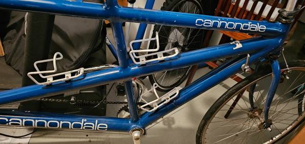 Cannondale Tandem bike in great condition with low miles. The bike size is 23" for captain and 21" for stoker, the bike does come with seatpost and saddle for the stoker, it's just not pictured but definitely included. The bike rides great and definitely fast. If you have any questions please feel free to ask. Selling for $1000 cash and can meet at the Berwyn Police station.