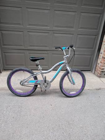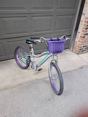20" Schwinn Astrid in good condition. Coaster brake and hand brakes. Optional purple basket.