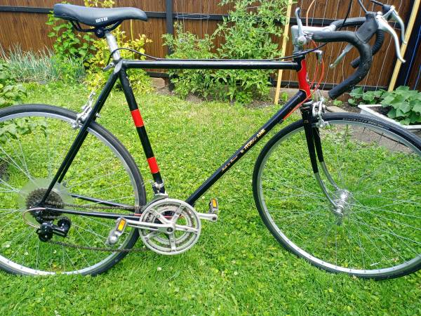 This bike is made in France. The road bike is in excellent condition,lightweight fully tuned, has 23",5 frame, 33" standover,12 speed and ready to ride.
