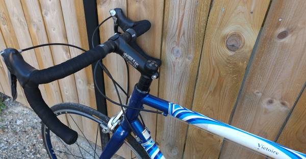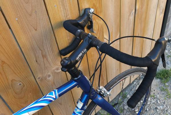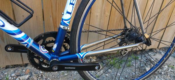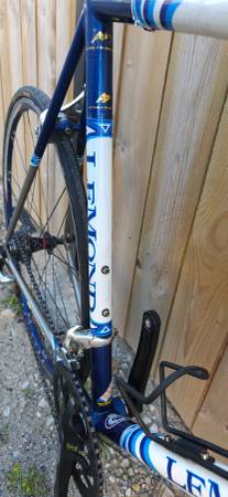 Lemond Victoire, Size 57 cm. Good for heights 5'10"-6'2". The frame was handmade in Waterloo, WI and it was the last year that this model was full titanium (Reynolds 3/2.5 butted). Overall condition of the frame, wheels and components is excellent, but it does show some signs of wear and minor cosmetic blemishes (pictured). Full Ultegra (except the crankset) 18 speed groupset, Bontrager Race Lite wheels. Chain, cassette and chainrings are newer. Brand new bar tape, the bike is ready to ride and has no issues. Lightweight and a fast ride on this titanium road bike. I am happy to answer any questions or provide additional photos upon request. I'm selling the bike for $1200.