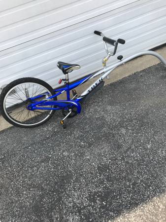 This Trek mountain train is in excellent working condition . 20” tire, attaches to seat post of adult bike so your child can ride along. $60.00 cash must pick up .