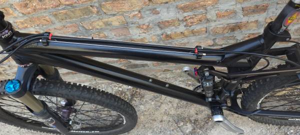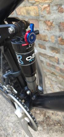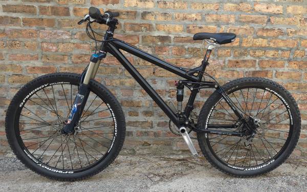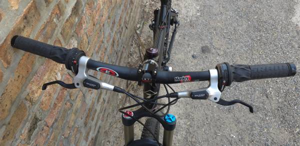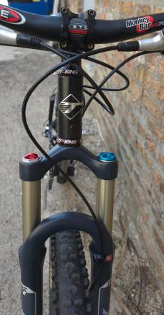 The bike is in excellent shape as is was hardly used. It's set up 2 x 9 speeds with Sram XO carbon grip shifters, Sram XO rear derailleur, Sram X-7 front derailleur, Fox Talas fork, Chris King headset, Easton Haven stem, Easton Monkey bars EA70, Easton seatpost, Shimano Deore XT hydraulic disc brake levers and calipers. Spinergy Xyclone Disc 26" wheels, upgraded to X-fusion air shox and Race Face crankset. The bike is ready to ride! If you have any questions feel free to ask. Selling for $900