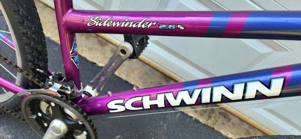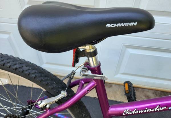 "Excellent Condition" Schwinn Sidewinder FS Mountain Bike, 16.5 frame, Shimano equipped, 21 speed, twist grip shifters, front suspension fork, front and rear "V" hand brakes, 3piece crank set, alloy rims, quick release front rim and alloy seat post, kick stand. Professionally Tuned and Ready to Ride. Located in Marengo, 60152