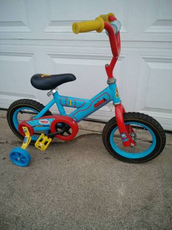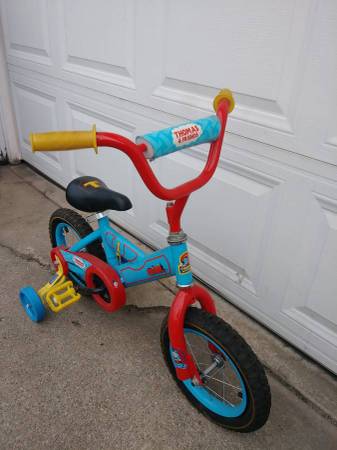 I have 1 Thomas the Train bicycle with 12 inch wheels & training wheels. It is brand new & bought already set up & never ridden. It is recommended for Kids 4 -7 years old & with a maximum weight of 69 pounds.