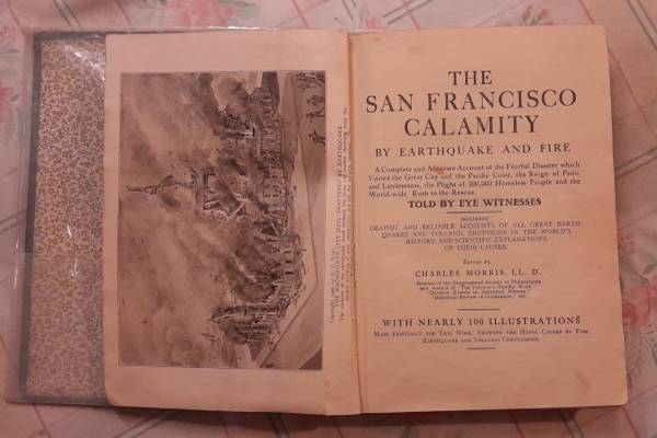 Hardcover with nearly 100 illustrations, 446 pages edited by Charles Morris L.L.D. A complete and accurate account of the fearful disaster which visited the great city and the Pacific coast, the reign of panic and lawlessness, the plight of 300,000 homeless people and the worldwide rush to the rescue. As told by eyewitnesses. Intact and complete with no loose or missing pages but the spine is loosening as can be seen in the 2nd picture. Pickup or shipping and handling will be $10 with payment of cash, check, Zelle or the CashApp.