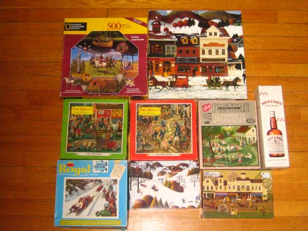 Many children's books and magazines like Highlights, Puzzlemania, American Girl, National Geographic, older and newer, Golden books, chapter books, books for younger readers, $1 UP each. Few new books. Good for starting teachers' libraries. Mattel Barbie Rapunzel tower $5. Board games. Labyrinth $10. Jigsaw puzzles are $2-$10 each, some very old vintage, some new, few never opened, different sizes, shapes, subject matter, including, Americana-style, National Geographic. Chalkboards 9 inches by 12 inches $1.50 each ( more available than what is shown in the photo).
