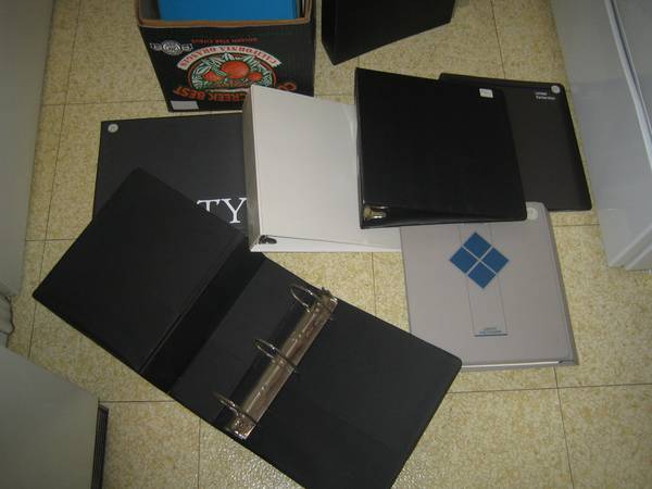 Three ring binders, in different sizes and varieties, $1 EACH TO $4 EACH.