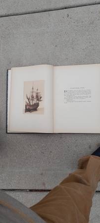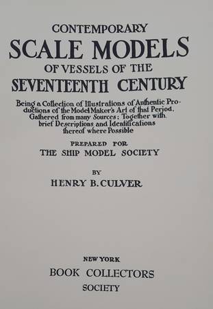 Leather bound coffee table size "Contemporary Scale Models of Vessels of the Seventh Century" by Henry B. Culver published for the Book Collectors Society in 1954 of which only 100 were printed for the society. This book features leather boards and many illustrations of seventeenth century ships in model form and is in very good condition. It is 12 3/4" by 17". Pickup or media mail shipping and handling will be $15 with payment of cash, check, Zelle or the CashApp