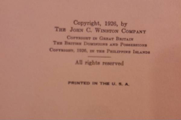 496 Pages with illustrations by Clara M Burd published in 1926 by The John Winston Company. Intact with no loose or missing pages, no writing or marking, browning pages, bumped corners, spine slightly loose at front and wear to the cover. Pickup or shipping and handling will be $9 with payment of cash, Zelle or the CashApp.