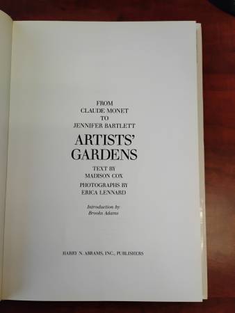 Artists Gardens 132 full-Color Photos. The Book Surveys The Gardens Created By A Host Of Artists. Text By Madison Cox And Stunning Photography From Erica Lennard. Copyright 1993 Like New Condition!