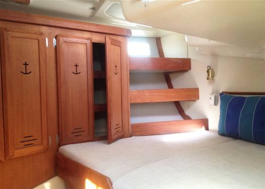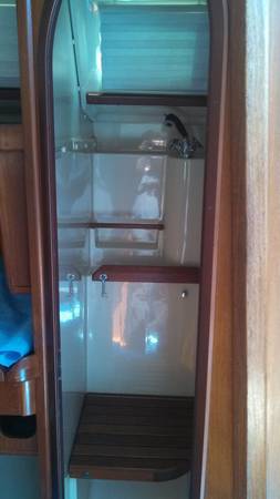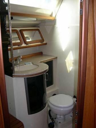 The boat is well equipped with a Garmin 12" touch-screen, multi-function display GPS chart plotter with a coupled direct-drive autopilot, radar, digital/analog speedometer, depth, wind speed/direction, and water temperature instruments. Roller furling, new sails, upgraded Dutchman self-flaking mainsail, state-of-the-art Garmin Fusion UD750 AM/FM/Bluetooth-enabled entertainment system with cabin and cockpit controls. An electric-powered winch for the main plus three 2-speed winches for the sheets. Modern LED lighting all around. Dodger, Bimini, refrigerator, stove, oven, hot water, standing shower, and electric head are just a few of the amenities.