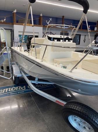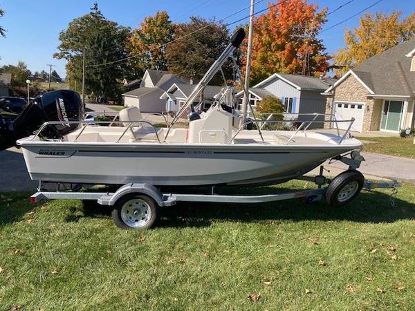End of season price reduction for quick sale. Practically new FRESHWATER Boston Whaler Montauk (only 20 hours and registration numbers have not even been put on), including Boston Whaler trailer. Custom lift also available. Powered by upgraded 60 HP Mercury. Rare color and feature rich (listed below) with classic bow rails and full cushion and fishing package. Meticulously cared for and never stored in water. Selling only because of a job change. New 150 Montauk's with similar features start at $44,000, if you can find them. Addition photos and video available upon request. Showings available on weekends at Clear Lake, Indiana.