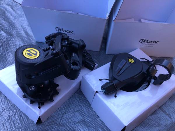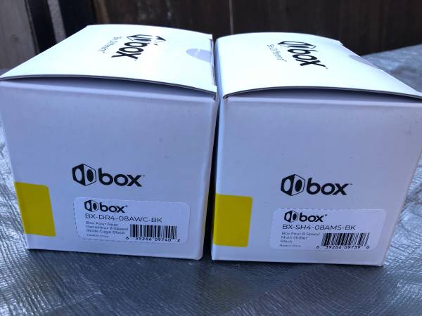 Box Four 8-Speed Shifter and Rear Derailleur Brand new in the boxes Limited slip clutch Multi shift shifter pulls up to 3 gears per shift $85 for the set or $61 for derailleur and $32 for shifter