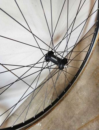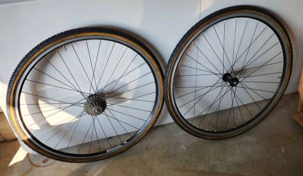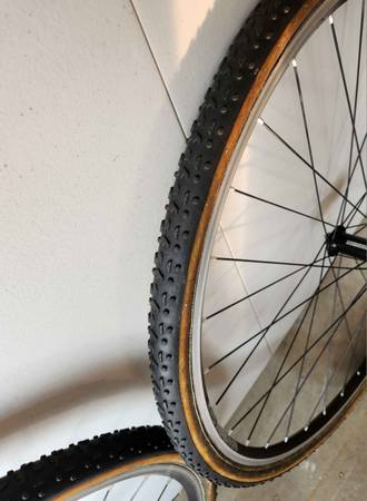 Campagnolo Record Hubs, Escape Velocity Tubular Rims. Older Challenge Griffo tires---need to be changed. Sturdy set of Cross wheels.