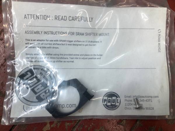Paul Components Shifter Mount- SRAM 31.8mm New. In sealed bag. Made in Chico, California. *asking $48*
