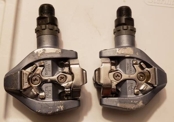 used Shimano PD-A515 pedals usually used on road bikes. Some scratches but fully functional.