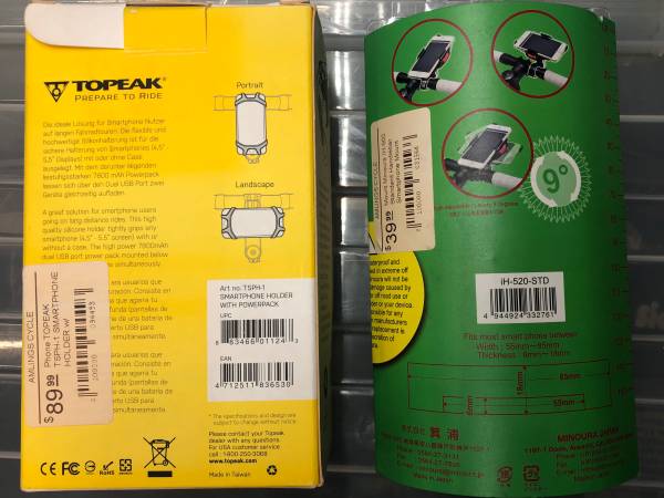 Smartphone Holders- discounted new overstock- handlebar mount for bicycles- priced separately- all new in factory packaging. - Topeak TAPH-1 holder with 7800mAh powerpack- reg. $90 **asking $60** -...